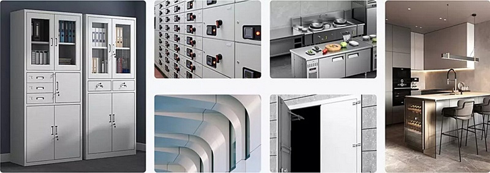 Dulapuri de dosare, dulapuri electrice, articole de bucătărie, pereți cortină, industria ușilor și lifurilor, electrocasnice și mobilier.