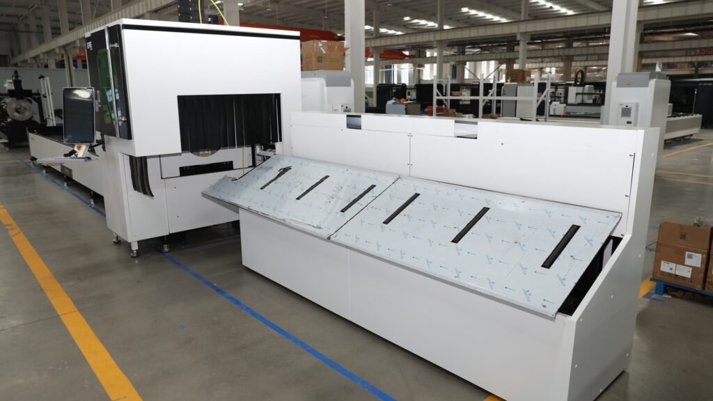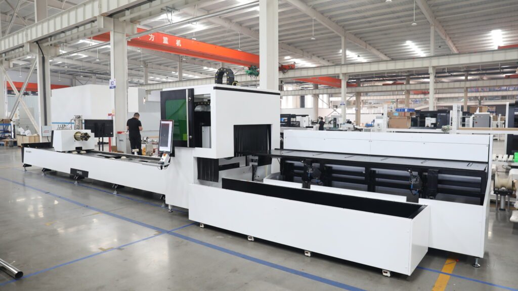 Încărcare și separare inteligentă a materialelor, alimentare și andocare fără probleme a țevii în mandrina de prindere. Încărcați pachete complete de țevi în dispozitivul de alimentare, iar mașina le va încărca pe rând, până când pachetul este terminat. Produsul finit este depus automat în cuva de depozitare. Această soluție de încărcare va economisi considerabil timpul de configurare și de producție, reducând considerabil forța de muncă necesară pentru producție. Încărcați pachete de până la 2500 kg, software-ul va controla procesul de tăiere prin intermediul mai multor tuburi sau pachete complete simultan.