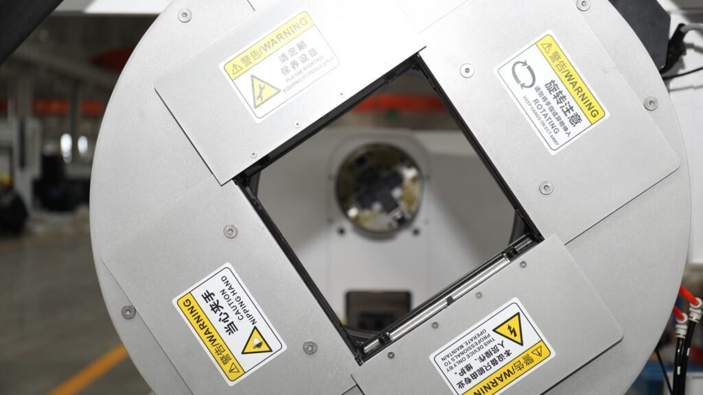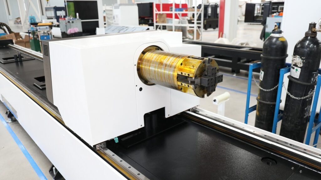 Unghi optim de evacuare (~25°) — piesele tăiate alunecă singure în cutia de colectare, fără intervenție manuală. Suport continuu și fix pentru profile – dispozitivul stabilizează conductele pe măsură ce sunt tăiate, prevenind devierea sau blocarea tuburilor subțiri. Integrat în fluxul de producție automat, ca parte a unui sistem cu încărcare/descărcare automată – crește randamentul și eficiența.